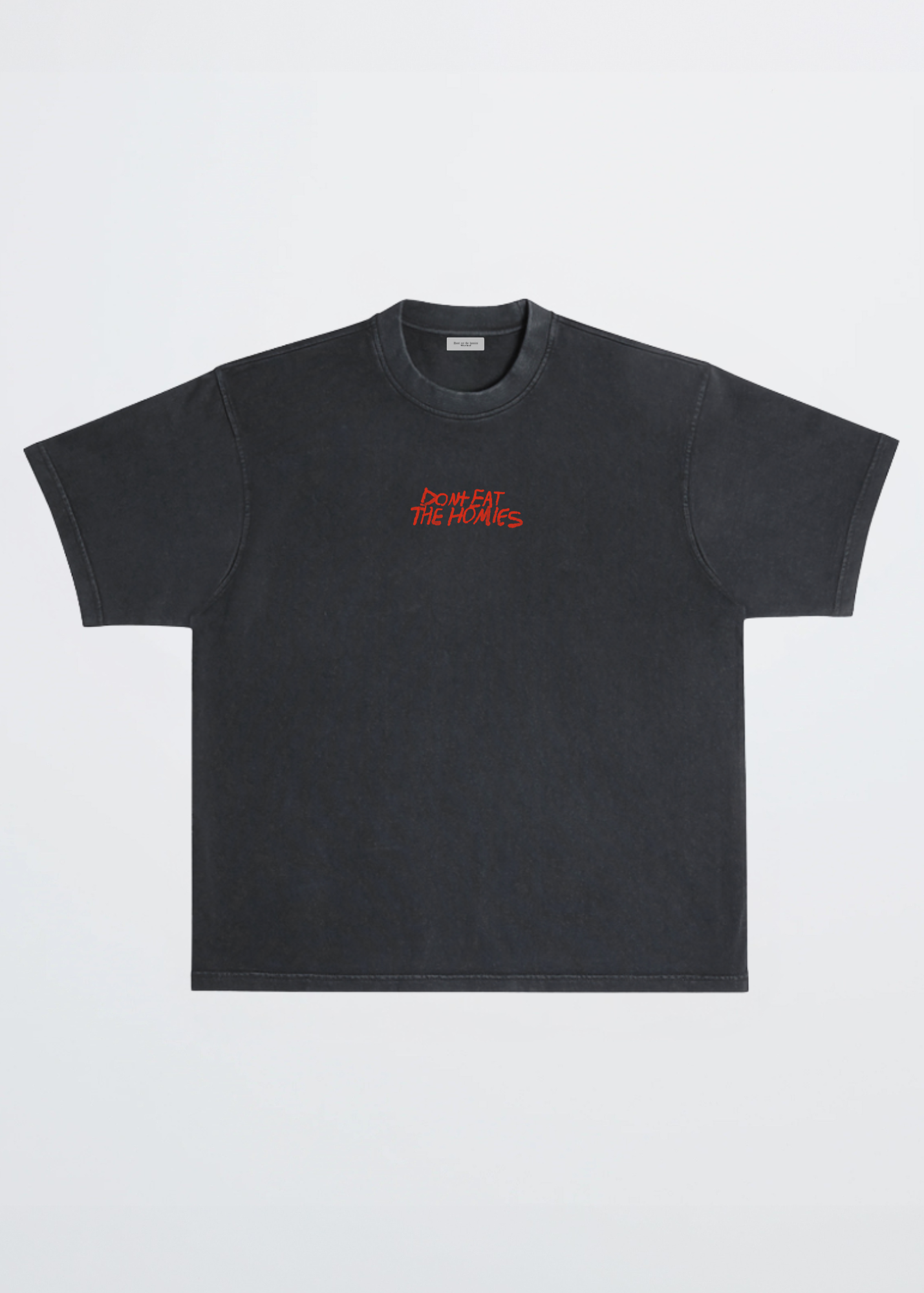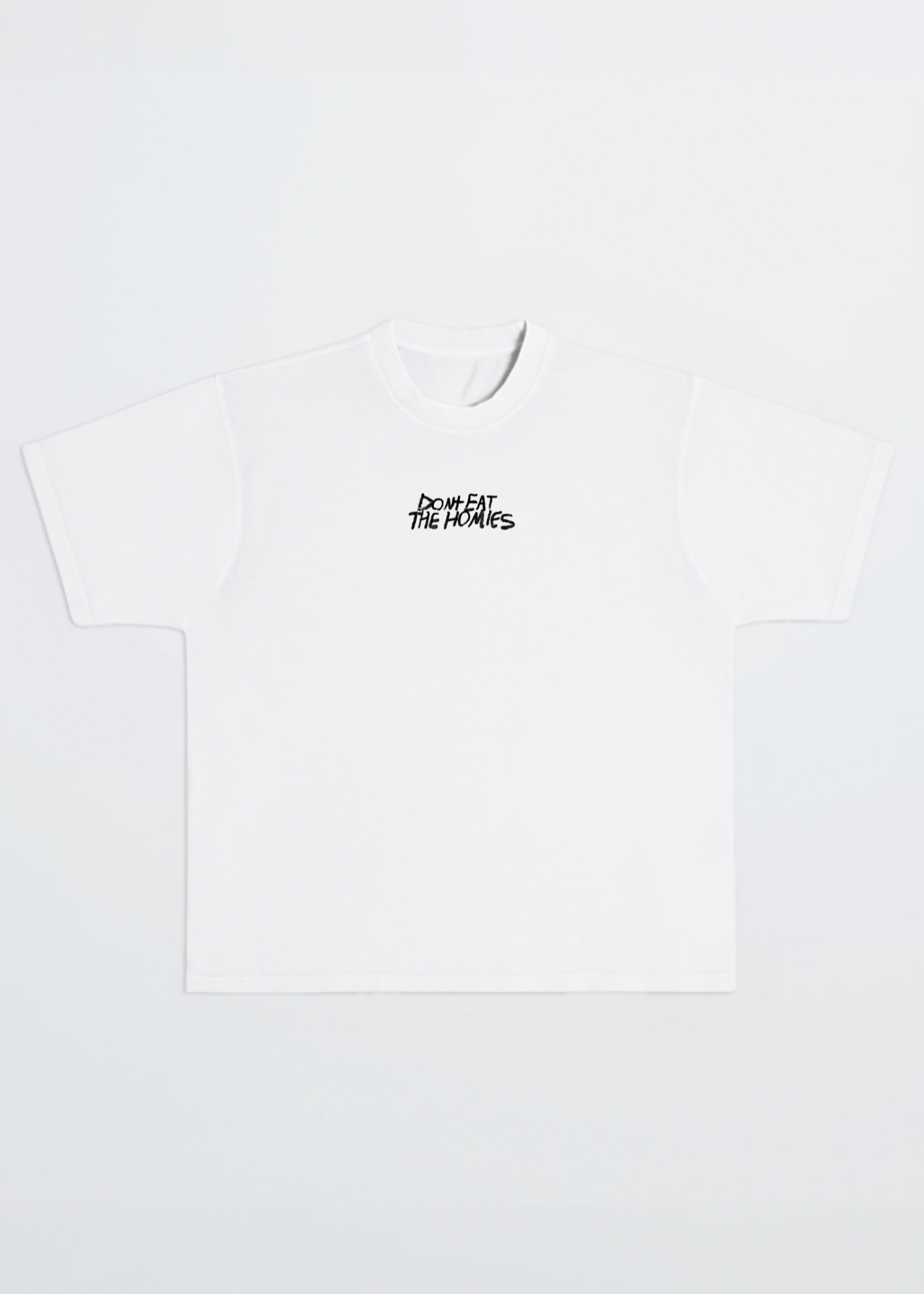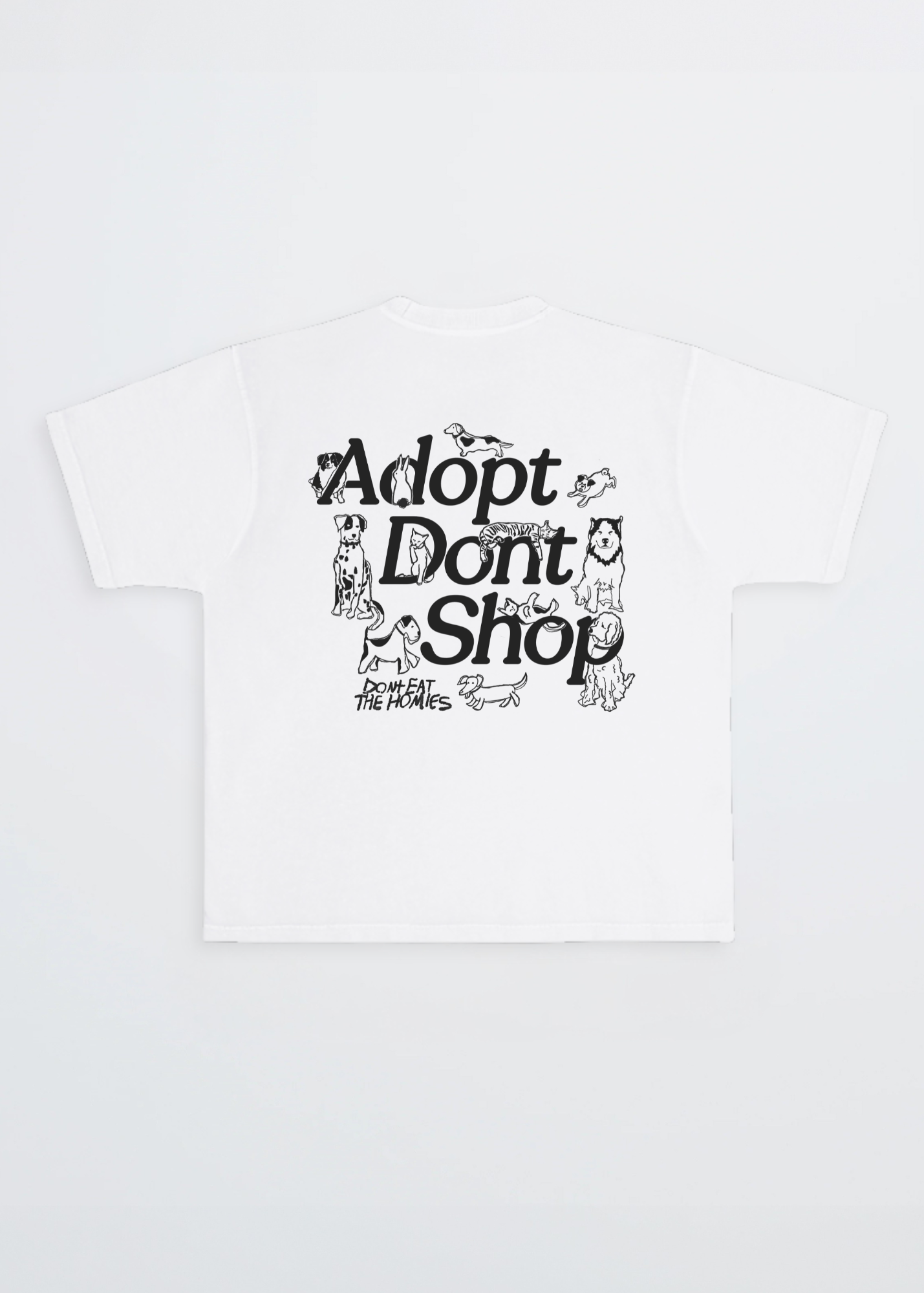 This premium cotton tee features our 'Adopt Dont Shop' design on the back and 'Dont Eat The Homies' on the front center chest.