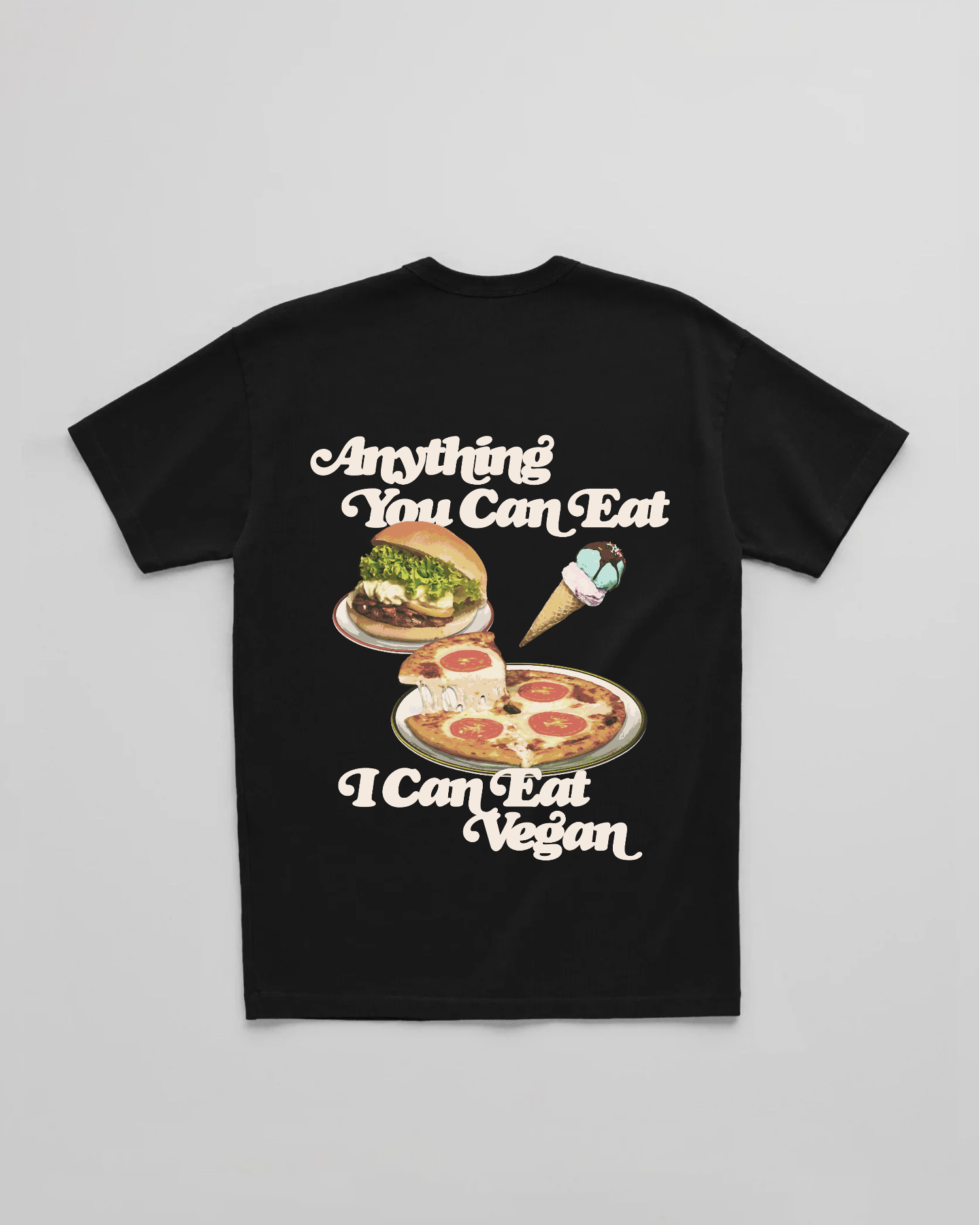 This Limited Edition unisex cotton tee features the 'Anything You Can Eat I Can Eat Vegan' design on the back and Dont Eat The Homies on the front.
