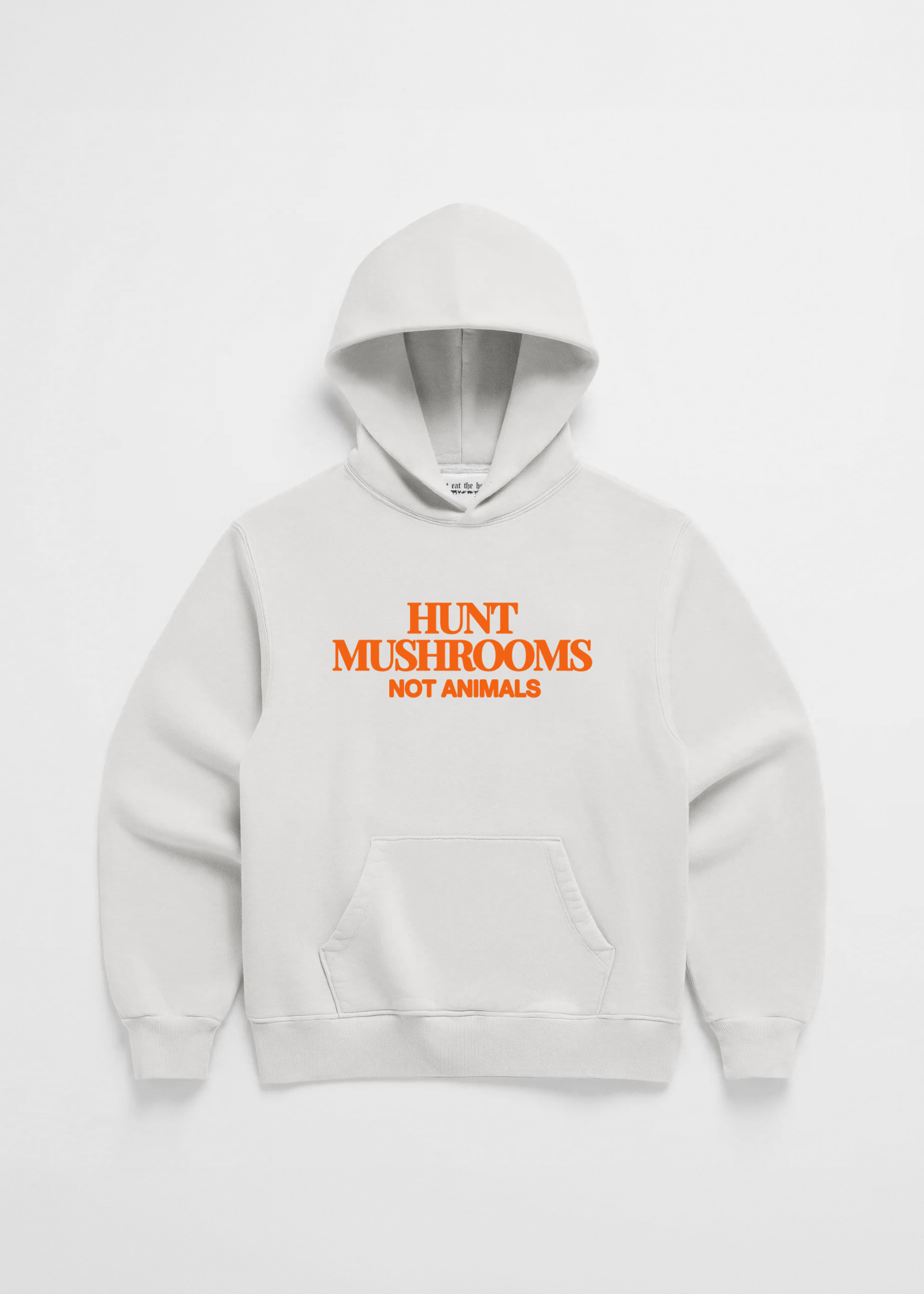Our Hunt Mushrooms Hoodie features a true to size fit and midweight feel for everyday wear - all year long. This hoodie features a "Hunt Mushrooms Not Animals" Graphic on center chest. The unisex fit & soft brushed fleece fabric is perfect for everyday wear and is designed with fashion, comfort, and the planet in mind. Made with 80% cotton and 20% recycled polyester.
