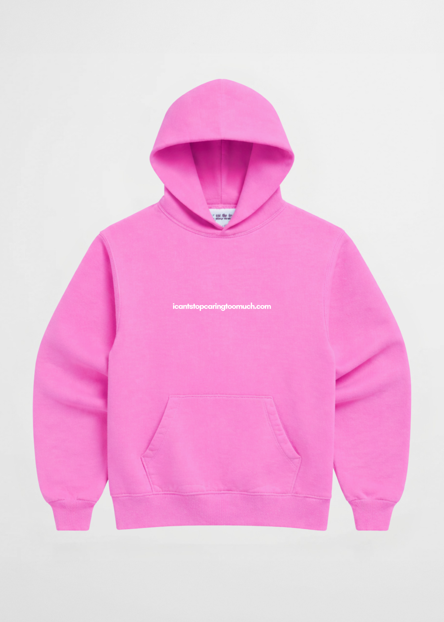 Our new icantstopcaringtoomuch.com hoodie features a mid weight feel perfect for everyday wear, all year round. Available on our new Hot Pink Colorway, and a classic black.
