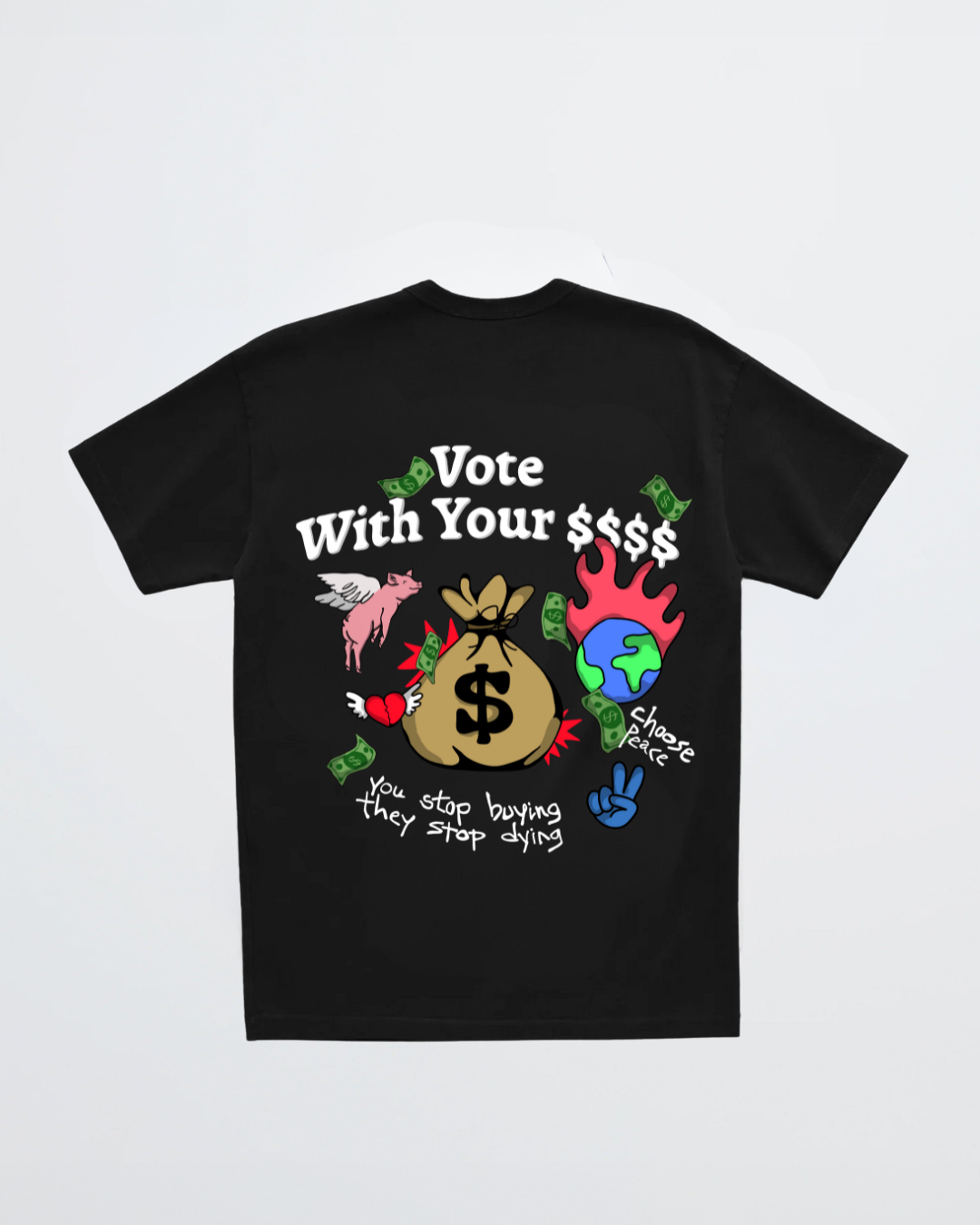 Our unisex premium tee features the "Vote with your $$$" graphic on the back and our OG Dont Eat The Homies on the center chest.